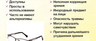 Существуют у очковой коррекции и минусы. К ним относятся: